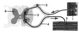 Рассмотрите рисунок рефлекторной дуги. Под каким номером на нем изображен рабочий орган?