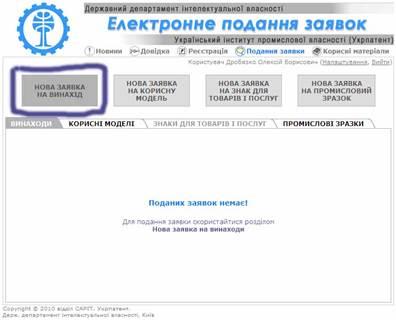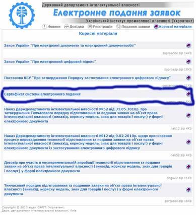 Вхід до системи електронного подання заявок Укрпатенту. 10