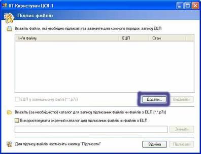 Накладання електронного цифрового підпису під матеріалами заявки та шифрування матеріалів заявки виконується за допомогою спеціальних програмних засобів накладання електронного цифрового підпису “IIT Користувач ЦСК-1”, інструкції стосовно інсталяції та налаштування яких наведені вище.
