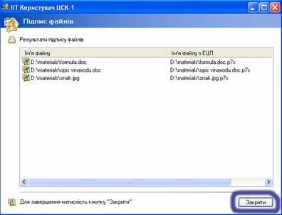 Тепер можна перейти безпосередньо до підпису та шифрування матеріалів заявки. Нагадуємо, що матеріали заявки повинні бути в форматі Microsoft Word, тобто мати розширення .doc. Підпис та шифрування – це дві окремі операції, тому спочатку необхідно підписати матеріали заявки, а потім зашифрувати вже підписані матеріали.
