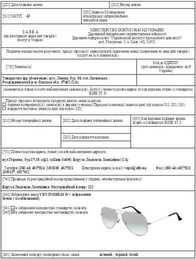 Сформований бланк заяви на знак для товарів і послуг має вигляд.