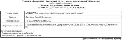 Розписка про одержання електронної заявки на винахід має такий вигляд.