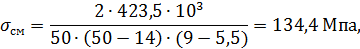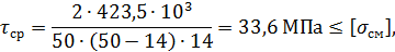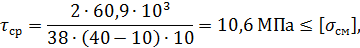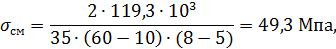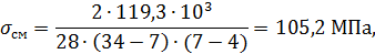 Напряжение на смятие и условие прочности проверяем по формуле: