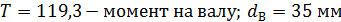 Где -диаметр вала; =7 мм-высота шпонки; -ширина шпонки; -длинна шпонки;