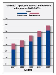 Рисунок 8. "Спрос платины для автокатализаторов в Европе за 2001-2005 гг." [7]