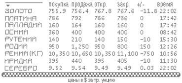 8. Золото Урала: новости геологии и добычи драгоценных металлов // Цена золота, цена платины, цена палладия, цена рутения. http://www.uralgold.ru/fixing.html от 6 декабря 2008г.