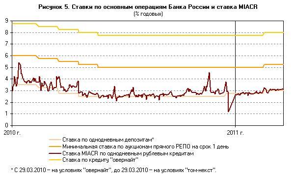 В 2011 г. в рамках продолжения работы по постепенному свертыванию антикризисных мер Банк России с 10 февраля приостановил проведение операций по предоставлению кредитов под залог нерыночных активов на срок от 91 до 180 дней, а также ломбардных кредитов по фиксированной процентной ставке на срок 30 дней. С 1 марта было приостановлено предоставление кредитов, обеспеченных поручительствами кредитных организаций, путем снижения до нуля лимитов по ним.