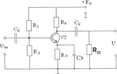 В соответствии с заданными исходными данными выбираем схему включения с общим эмиттером и с эмиттерной стабилизацией.