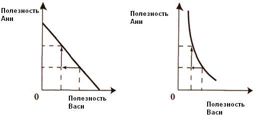 где W- функция общественного благосостояния, а и - индивидуальная функция полезности. В нашем условном примере, когда общество состоит из двух лиц, Ани и Васи, формула примет вид: W
