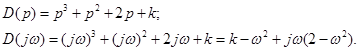 Так как параметр является вещественной положительной величиной, то областью устойчивости являются значения параметра – к, расположенные на вещественной положительной оси, т.е.] 0, 2 [, что может быть провере-но по критерию Гурвица.