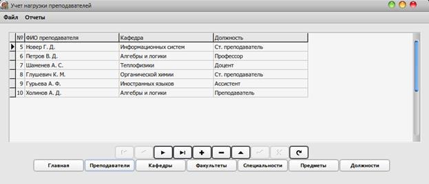 Приложение, работающее с базой данных учета нагрузки преподавателей: