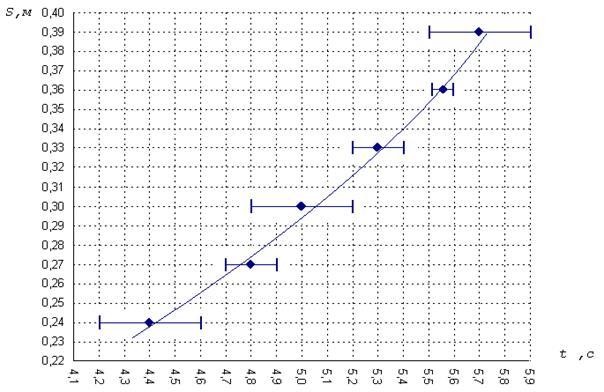 Рис. 4.3.2. Зависимость пути от квадрата времени