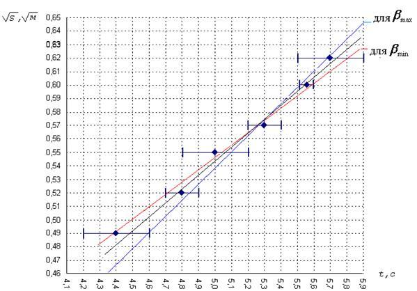 Рис. 4.3.3. Зависимость корня квадратного из пути от времени