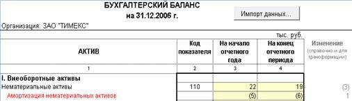 2. Ввод в Excel данных российских форм бухгалтерской отчетности (или автоматически импортируем из файла в формате сдачи отчетности в налоговую инспекцию).