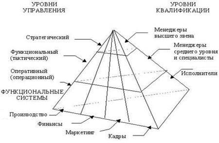 Из рисунка видно, что чем выше по значимости уровень управления, тем меньше объем работ, выполняемых специалистом и менеджером с помощью информационной системы. Однако при этом возрастают сложность и интеллектуальные возможности информационной системы и ее роль в принятии менеджером решений. Любой уровень управления нуждается в информации из всех функциональных систем, но в разных объемах и с разной степенью обобщения.
