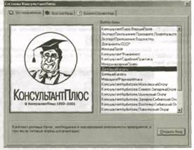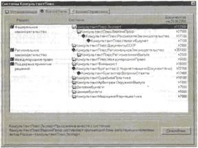 Запуск системы осуществляется двойным щелчком мыши по ярлыку программы Консультант Плюс на рабочем столе. На экране появляется окно системы Консультант Плюс, в котором пользователям предлагается база Деловые Бумаги. Если щелкнуть мышью по вкладке Все системы, то можно увидеть: