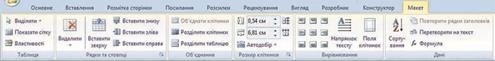 Як видно з наведеного прикладу (табл. 1.3), висота рядків і ширина стовпців таблиці може бути різною. Кілька клітинок можуть бути об’єднані в одну, а деякі з клітинок можуть бути розділені на кілька. Орієнтація тексту в клітинці може бути горизонтальною або вертикальною. Для різних об’єктів таблиці можна встановити межі різного типу та різну заливку.