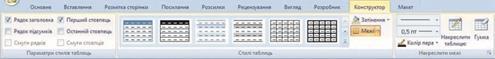 • заливка об’єктів таблиці – задається кольором і візерунком та ін.