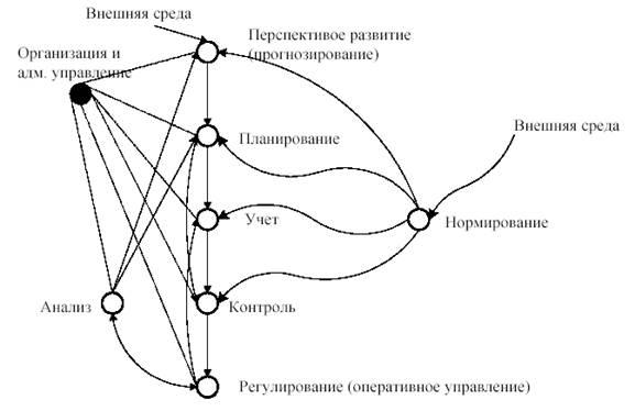 Перечисленные функции взаимосвязаны между собой и их можно представить в виде топологической модели (см. рис. 2.), отражающей технологию управления.