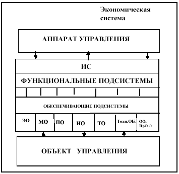 Поскольку любая экономическая система является кибернетической системой, то в ее составе можно выделить две основные компоненты (см. рис. 1): объект управления и аппарат управления (система управления).