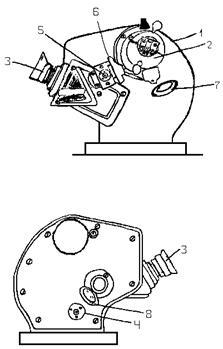 В настоящей работе используется фотометр Ричи (рис.1), который состоит из следующих основных частей: равнобедренной прямоугольной призмы (1), у которой грани, прилегающие к прямому углу, окрашены белой матовой краской, прямоугольной оправы (2), открытой с двух сторон, в которую вставляется призма, матового полупрозрачного экрана (3), который делится ребром прямого угла призмы на равные части, раструба (4), служащего защитой от попадания постороннего света на матовый экран. Раструб жестко соединен с оправой призмы.
