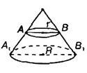Площадь боковой поверхности усеченного конуса равна разности площадей боковых поверхностей конусов: S=S