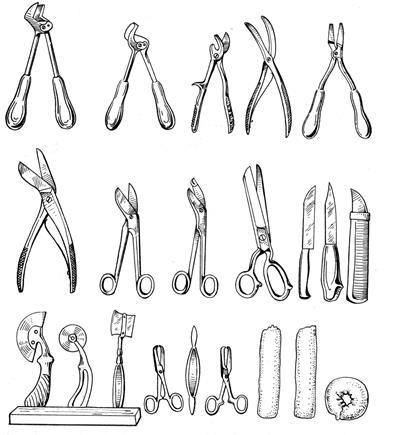 Весь інструментарій гіпсувальної також зберігають у шафі. Ножі повинні бути дуже гострими, в іншому випадку вони не будуть обрізати гіпс, а тільки розминати його, що призведе до порушення форми і цілості пов'язки.