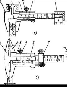 предназначены для измерения наружных и внутренних размеров изделий. Они выпускаются четырех типов: ШЦ—I (рис. а);
