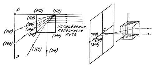 Рис. 1. Схема, поясняющая происхождение пятен на рентгенограмме, полученной по методу неподвижного кристалла