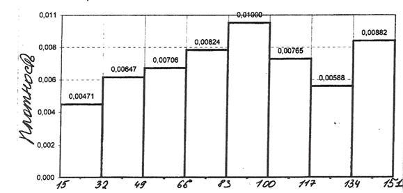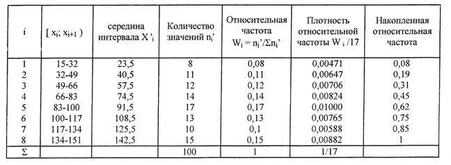 Значение =1,984 находится по таблице критических точек распределения Стьюдента по уровню значимостями d =1- =1-0,95=0,05 и числу степеней свободы k=n-1=99. Следовательно, доверительный интервал математического ожидания исследуемой величины имеет вид: