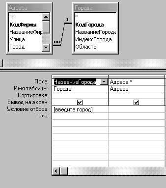 . Создайте запрос на выборку "Фирмы по городу", который настройте, как показано на рисунке: