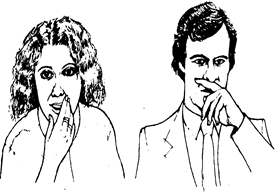 свідчать про недовіру до вас, сумнівів у вашій правоті, про бажання щось приховати від вас. У цих випадках співрозмовник машинально потирає чоло, скроні, підборіддя, прагне прикрити обличчя руками. Але найчастіше він намагається не дивитися на вас, відводячи погляд убік. Інший показник скритності – непогодженість жестів. Якщо ворожий стосовно вас чи людина, що захищається, посміхається, то це означає, що він за штучною посмішкою намагається навмисне сховати свою нещирість.
