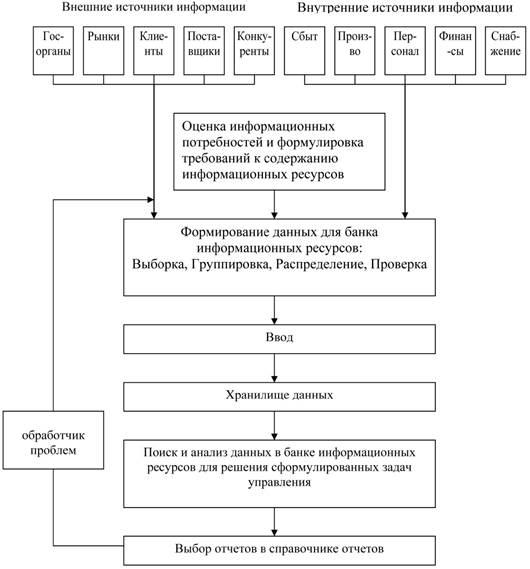 Информационными ресурсами является информация, используемая предприятием в качестве средства выполнения задач принятия управленческих решений. Схема формирования и использования информационных ресурсов предприятия, представленная на рис. 1, построена на основе структуры управления информационными ресурсами4