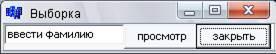 Приложение содержит раздел «выборка» с помощью данного раздела пользователь может ввести фамилию разыскиваемого лица в специальную строку и нажать кнопку «просмотр», благодаря чему откроется окно отчёта содержащего полную информацию о разыскиваемом лице. Раздел приложения «выборка» представлен на рис.7.