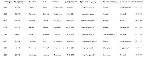 · Выборку данных по фамилии разыскиваемого лица;