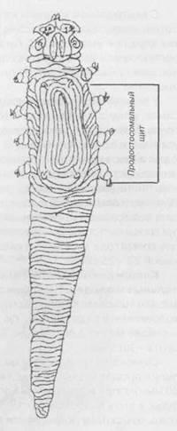С вентральной стороны на концевых члениках пальп с двух сторон располагаются по шесть очень коротких сосочков в виде конуса. Далее между пульпами находятся тонкие стилетовидные хелицеры. Они заключены в футляр. В их основании видно ротовое отверстие, а чуть ниже него имеются парные дыхательные отверстия. На дорсальной поверхности расположен проподосомальный щит с закругленными углами. По его периферии расположены 4 щетинки-микрохеты. Опистосома значительно длиннее передней части тела, с поперечными кольцевыми складками.