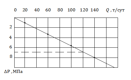 Решение. По результатам исследований строим индикаторную линию скважину (рис 12). Предварительно рассчитываем депрессию на каждом режиме работы: