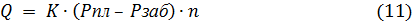где - коэффициент продуктивности в определенный по результату исследования скважин. Для пересчета в используют следующую формулу: