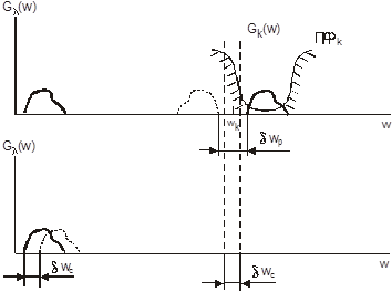 . Эти области определяют величину защитных интервалов между частотными спектрами соседних канальных сигналов. С учетом защитных интервалов ширину спектра 2Δƒc