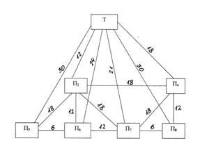З терміналу Т (рис. 1.2) доставляють вантажі в шість підприємств (П2