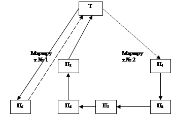 Схема транспортної мережі складається на основі діаграми дрібнопартійних таропотоків і норм часу на рух транспортних машин (рис. 1.2).