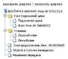 В настоящее время разработана структура база данных, реализована подсистема структурирования объектов, т.е. построения его в виде дерева иерархии (рнс.1) – с учетом подчиненности элементов в сборочной единице и узле, используя информацию, хранящуюся в базе данных.