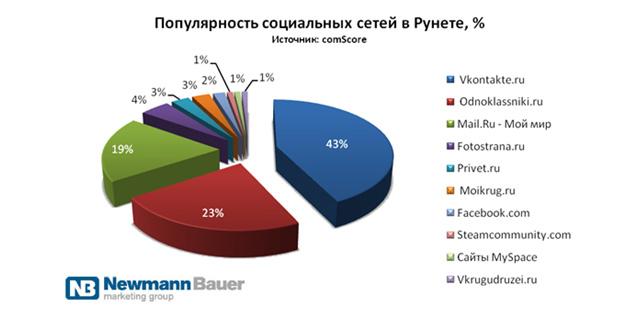 Хочется отметить, что по данным ComScore в Рунете 59 % всех пользователей Интернета «зависают» в социальных сетях.