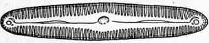 Каждая водоросль строит свою оболочку в виде коробочки с крышкой. В этом уютном домике она и живет в полной безопасности, потому что раздавить створки панциря чрезвычайно трудно. Сам хозяин очень мал—10—15 микрометров составляет его тело в диаметре, но какие чудеса архитектуры он творит, какие загадки ставит ученым! Во-первых, форма панциря. Если домик похож на ученический пенал, водоросль называется пиннулярией (рис. 1, а), а если оболочка ромбовидная, то навикулой или лодочкой (рис. 1, 6). Во-вторых, и этот вопрос до сих пор не изучен, водоросли с удлиненной формой тела плавают в нужном им направлении, так что название «лодочка» не случайно.
