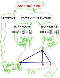 1)В стереометрии известен аналог теоремы Пифагора для треугольного параллелепипеда d²=a²+b²+c², где d- диагональ параллелепипеда a,b,c – величина трех его измерений.
