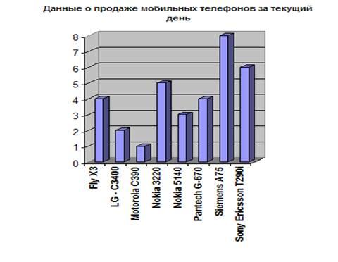 Графическое представление данных о продаже мобильных телефонов за текущий день