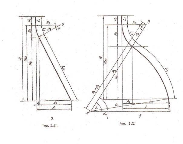 При расчете профиля типа "б" (рис. 1.2) после выбора длины вертикального участка Н1