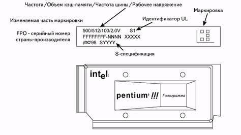 Маркировка процессора Pentium III показана на рис. 5.