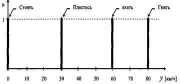 Эти сигналы совместно с сигналом спидометра автомобиля (V) поступают в нечеткий регулятор. В данной работе Вам предложено "научить" нечеткий регулятор обрабатывать эти сигналы. На выходе нечеткого регулятора нужно сформировать сигнал уставки на скорость (Y).