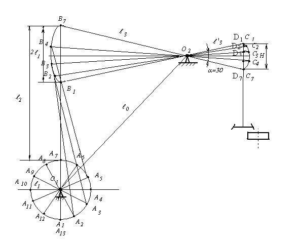 2.1. Определение геометрических параметров шарнирного четырехзвенника. Построение плана положений механизма.